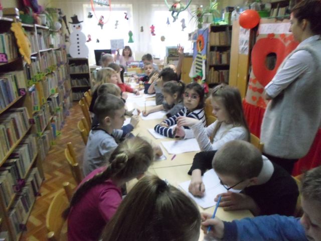 W zajęciach wzięła udział kl. III a Szkoły Podstawowej w Rojewie. Wśród serii, które proponowano do czytania tej grupie wiekowej były książki o Basi i jej przyjaciołach oraz Biuro śledcze Tomuś Orkiszek i Partnerzy. Dzieci poznały też fragment książki pt. „Skradziona kolekcja” pochodzącej właśnie z tej ostatniej wymienionej serii. Sporym wyzwaniem dla całej grupy była krzyżówka z bohaterami utworów literatury dziecięcej. W drugiej części zajęć, po przypomnieniu zasad rozmieszczenia książek na półkach, uczestnicy mieli za zadanie odszukać według wylosowanego polecenia konkretną książkę na regale.