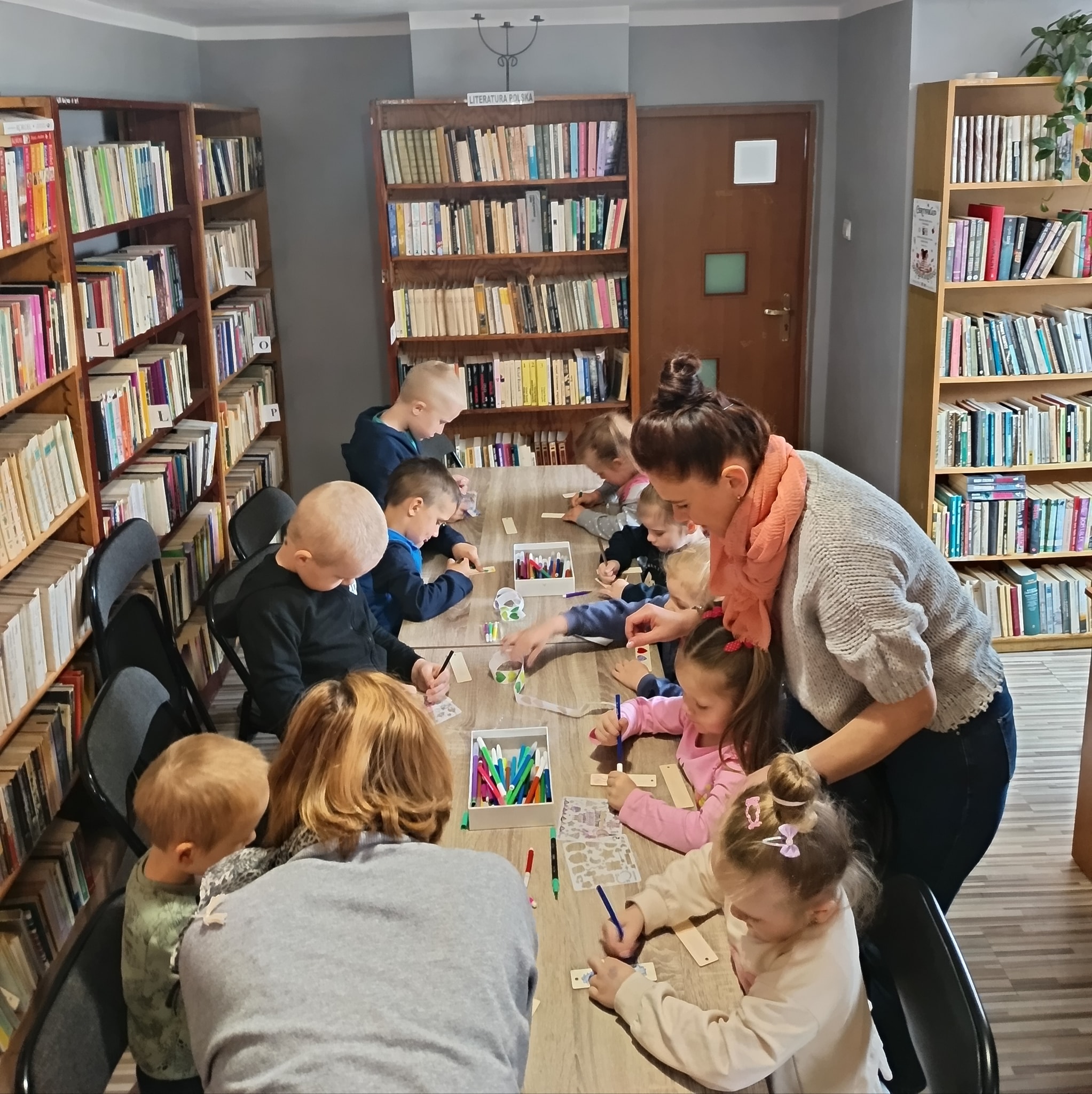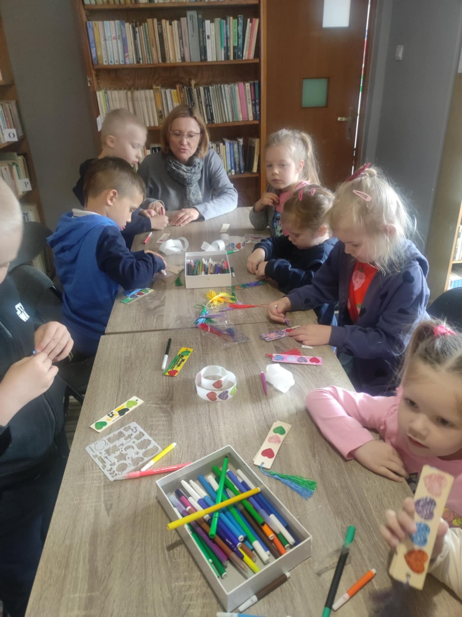 W ramach Tygodnia Bibliotek Filia biblioteczna w Rojewicach zaprosiła dzieci z oddziału przedszkolnego Szkoły Podstawowej w Rojewicach na wyjątkowe, kreatywne spotkanie. Tym razem mali goście ozdabiali drewniane zakładki do książek – według własnych pomysłów, z użyciem kolorowych pisaków i ogromnych pokładów wyobraźni. Powstały oryginalne, barwne prace, które z pewnością umilą dzieciom niejedno czytelnicze popołudnie.